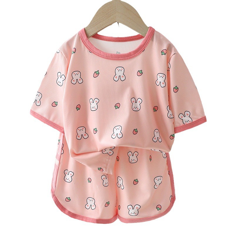 | nameOriginal | Children's short-sleeved shorts suit girls' summer ice silk small floral printed home wear baby boy cartoon short-sleeved T |
