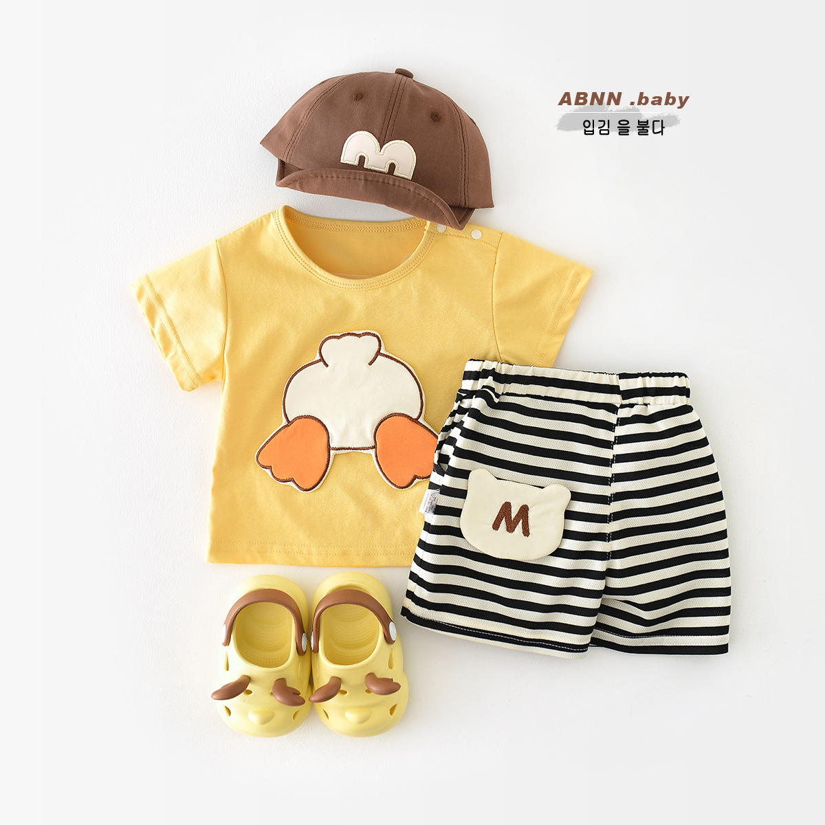 | nameOriginal | Children's short-sleeved summer clothes newborn cartoon duck half-sleeved baby cotton cute T-shirt baby outing top |