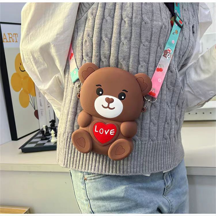 | nameOriginal | Children's silicone bag cartoon cute bear shoulder coin purse mobile phone Bag Girl primary school boy messenger bag |