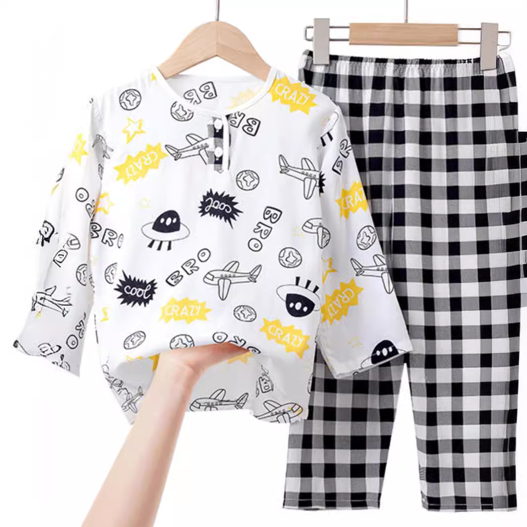 | nameOriginal | Children's Silk Pajamas suit Boys' and Girls' Cartoon Long-sleeved Pants Summer Casual Pants for Baby Girls Casual Wear |