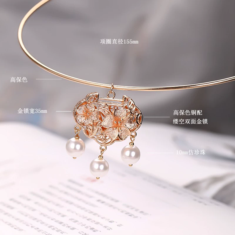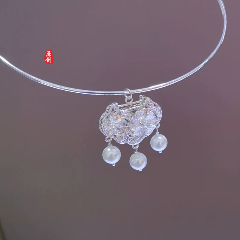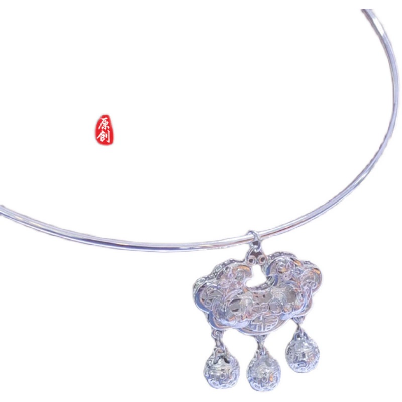 Children's silver antique accessories Longevity Lock Pendant Yingluo Collar Peaceful Ruyi Lock Ming Dynasty Hanfu Bell Necklace