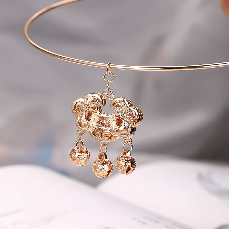 Children’s silver antique accessories Longevity Lock Pendant Yingluo Collar Peaceful Ruyi Lock Ming Dynasty Hanfu Bell Necklace