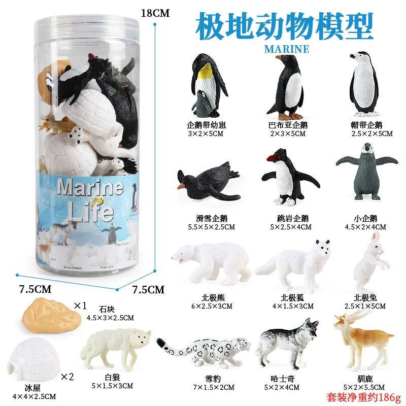 | nameOriginal | Children's simulated barrel mini polar animal model set toy penguin polar bear igloo husky ornaments |