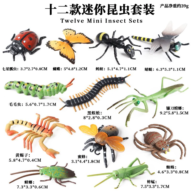 Children’s simulation wild insect animal model mini butterfly bee spider mantis scorpion centipede dragonfly toy