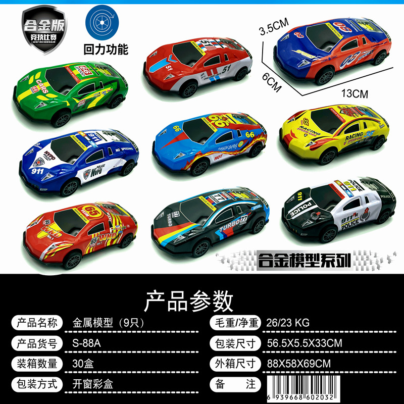 Children’s Simulation Inertia Back Force Alloy Car 13cm Simulation Car Model Night Market Stall Gift Box Toy