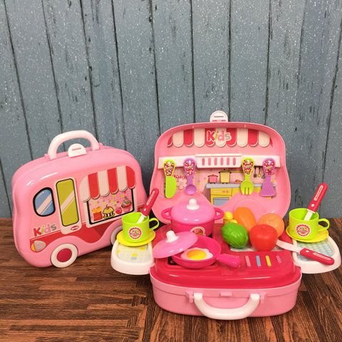 | nameOriginal | Children's simulation mini kitchen play house portable suitcase cooking toys cooking kitchen storage box girls |