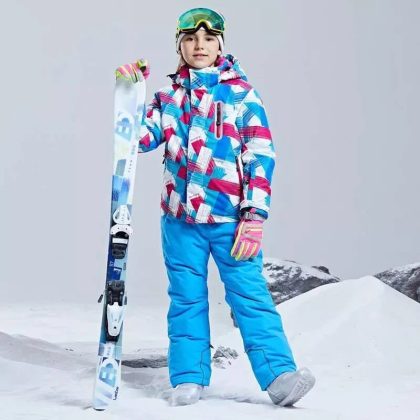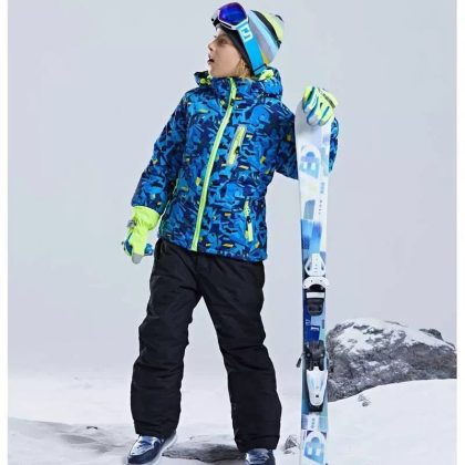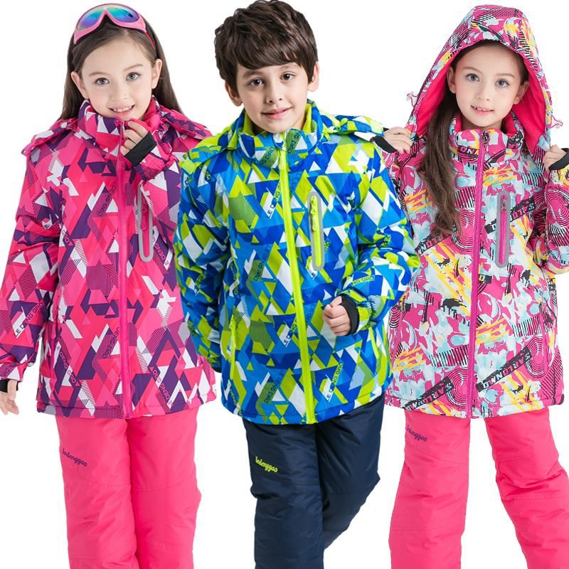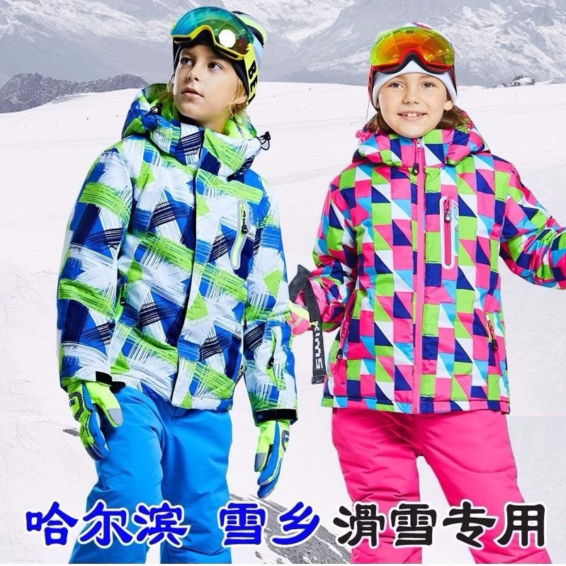 Children's Ski Suit suit Boys' and Girls' Winter Coat Cotton Trousers Thickened Waterproof Rush Clothes for Mountain Climbing at minus 30 degrees