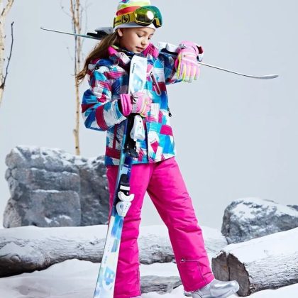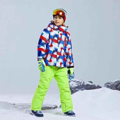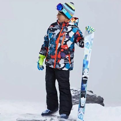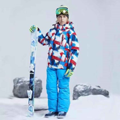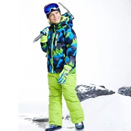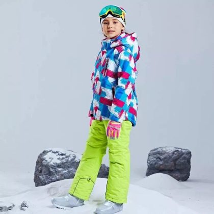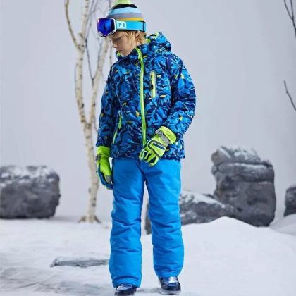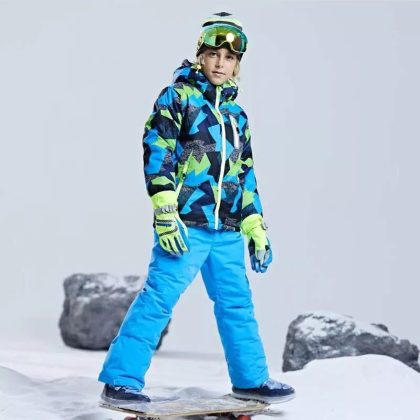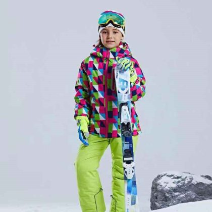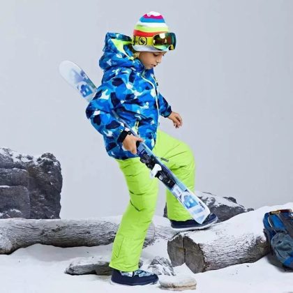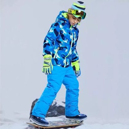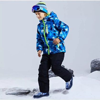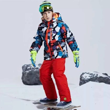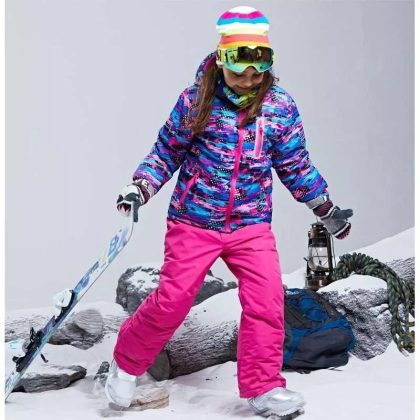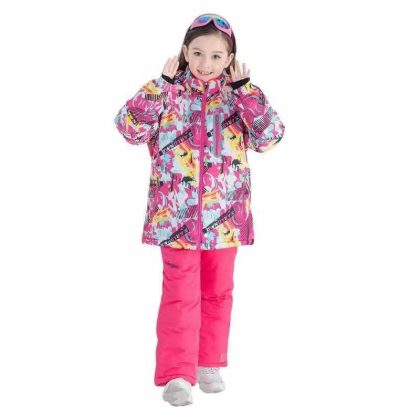Children’s Ski Suit suit Boys’ and Girls’ Winter Coat Cotton Trousers Thickened Waterproof Rush Clothes for Mountain Climbing at minus 30 degrees