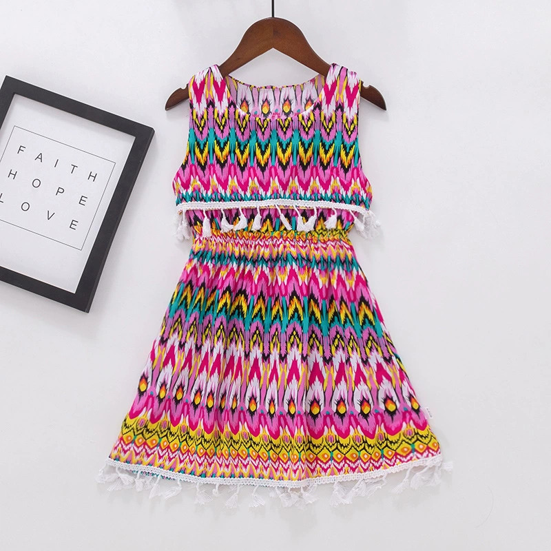 | nameOriginal | Children's skirt cotton silk artificial cotton bohemian holiday skirt girls 2024 new cotton silk vest dress |