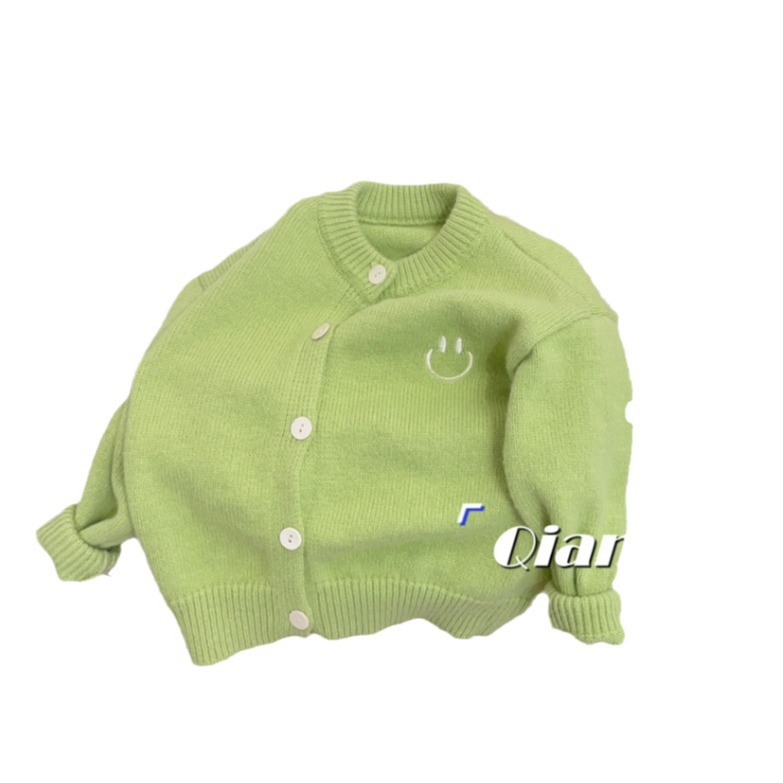 | nameOriginal | Children's smiley face embroidered cardigan sweater Korean style coat 24 autumn and winter western style outer wear long sleeve round neck children's sweater |