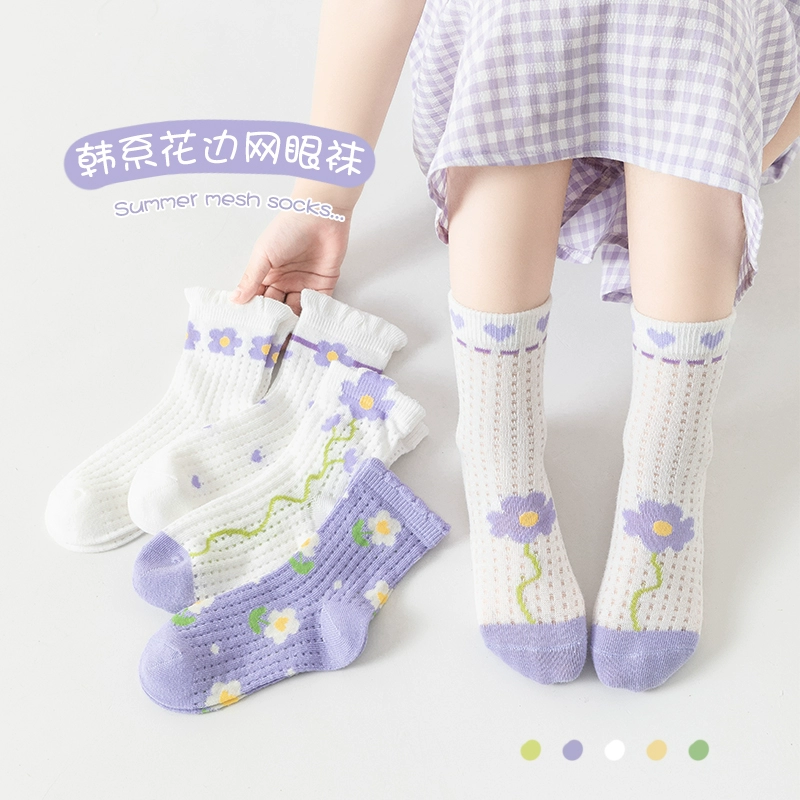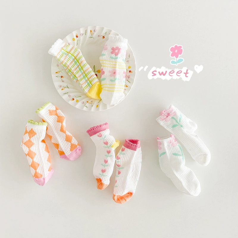 | nameOriginal | Children's smiling face mesh socks summer thin pure cotton Korean style ins trendy colorful smiling face cute baby breathable socks |