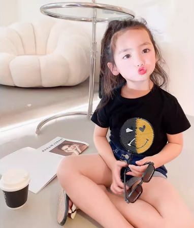 | nameOriginal | Children's smiling face sequin color-changing clothes t summer children's clothing double-sided sequin flip-up face-changing short-sleeved T-shirt pure cotton T-shirt |