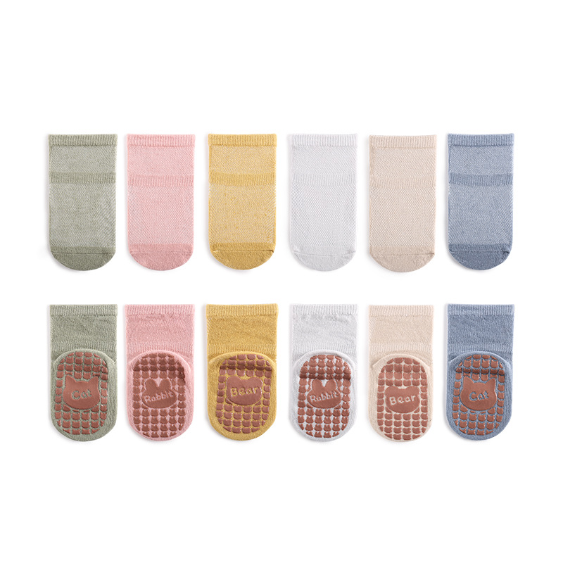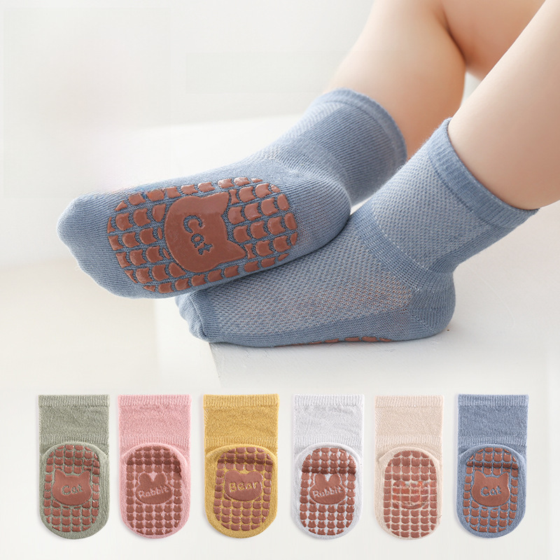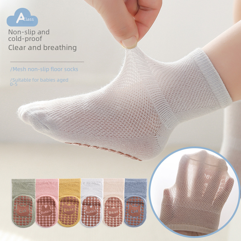 Children's socks 2023 Summer solid color mesh breathable cartoon dispensing floor socks baby toddler socks trampoline socks