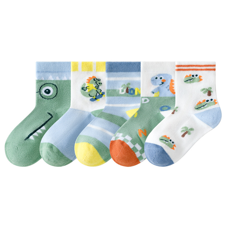 | nameOriginal | Children's socks 2024 summer new ultra-thin boys cotton socks mesh cartoon dinosaur large children breathable tube socks |