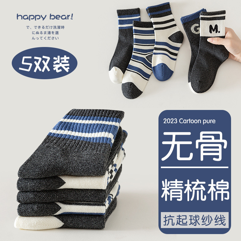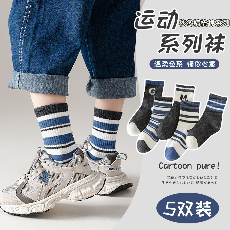 | nameOriginal | Children's socks boneless spring and summer boys M letter striped sports mid-calf socks medium and big children Class A high elastic tide cotton socks |