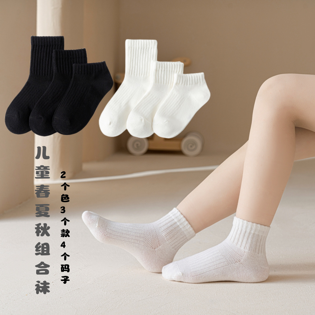 | nameOriginal | Children's socks boys and girls black and white tube socks spring and summer fine loose cotton breathable sweat-absorbing explosive short tube socks boat Socks |