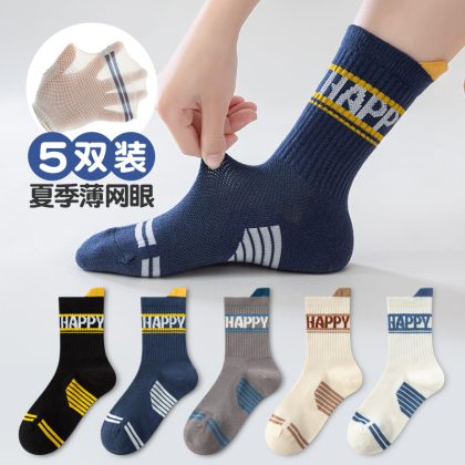 | nameOriginal | Children's socks boys' summer spring and autumn sports boys' socks spring and summer thin A cotton mid-calf mesh socks factory wholesale |