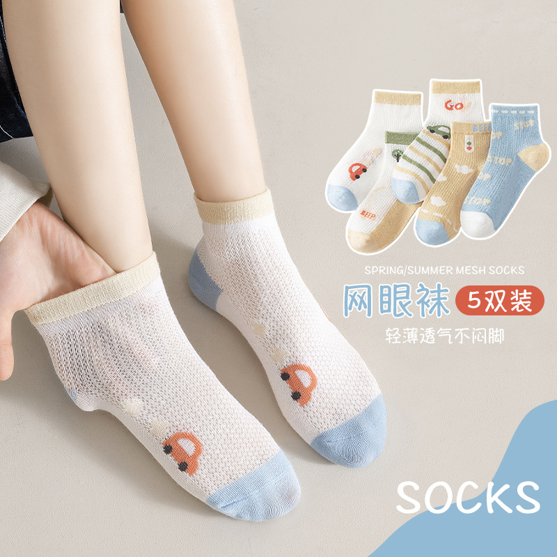 Children's socks spring and summer thin combed cotton class a Boys and Girls boat Socks cartoon cute mesh breathable baby socks