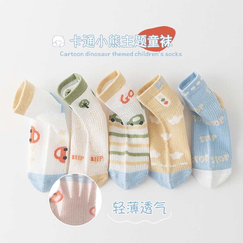 Children’s socks spring and summer thin combed cotton class a Boys and Girls boat Socks cartoon cute mesh breathable baby socks