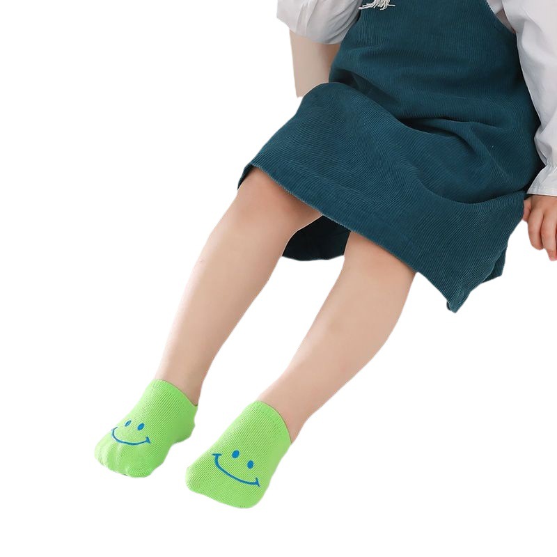 Children's socks summer thin breathable baby socks 1-8 boys and girls boat socks candy color Korean hot stamping smile