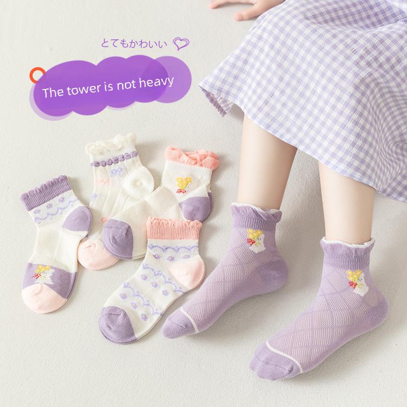 | nameOriginal | Children's socks summer thin tube socks girls purple cute princess lace ins tide small and medium-sized children's cotton socks |