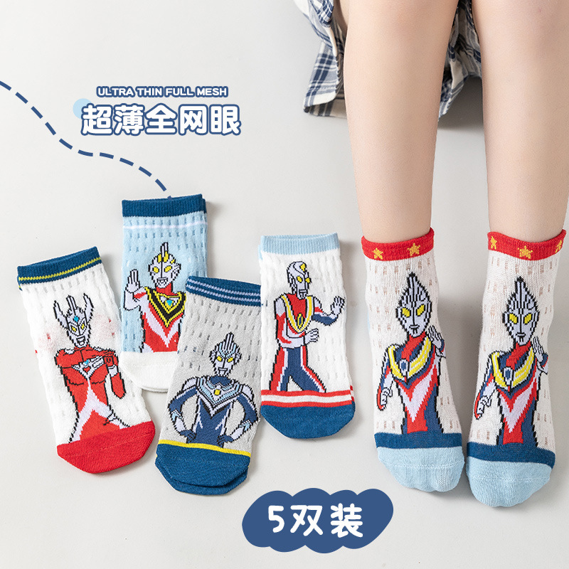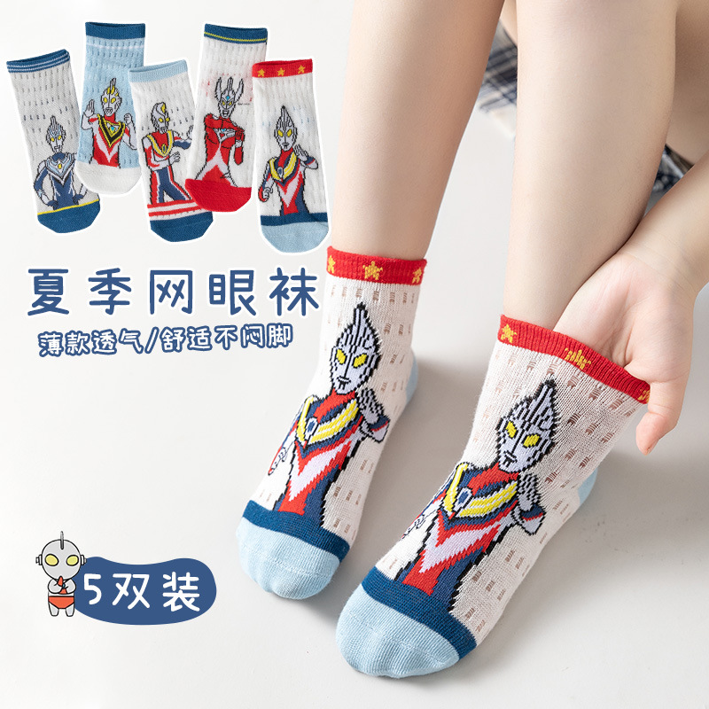 | nameOriginal | Children's socks Ultraman boys' summer mesh breathable glass silk thin summer ice silk Crystal cartoon socks |