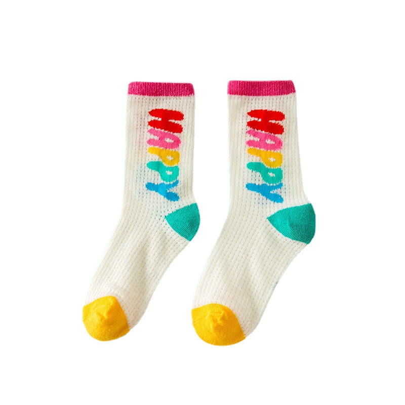 Children’s socks wholesale 2023 spring and summer thin rainbow mesh socks small wave Point Amusement Park girls socks
