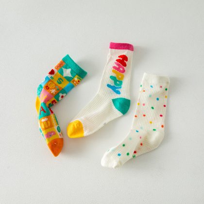 Children’s socks wholesale 2023 spring and summer thin rainbow mesh socks small wave Point Amusement Park girls socks