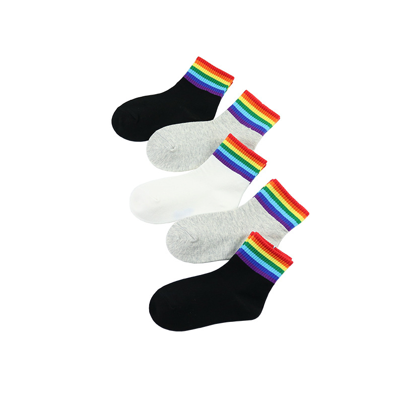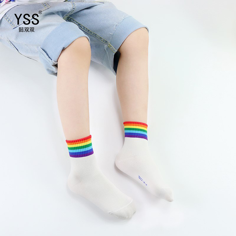 | nameOriginal | Children's socks Yi pair autumn and winter New Korean version of Rainbow tube socks combed cotton black and white gray sports socks baby socks |