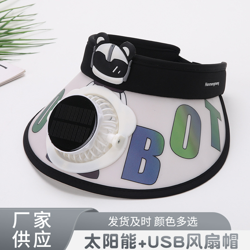 Children's Solar Fan Hat Rechargeable Outdoor Sunshade Sunscreen for Boys and Girls Cute Big Eaves Empty Top Hat