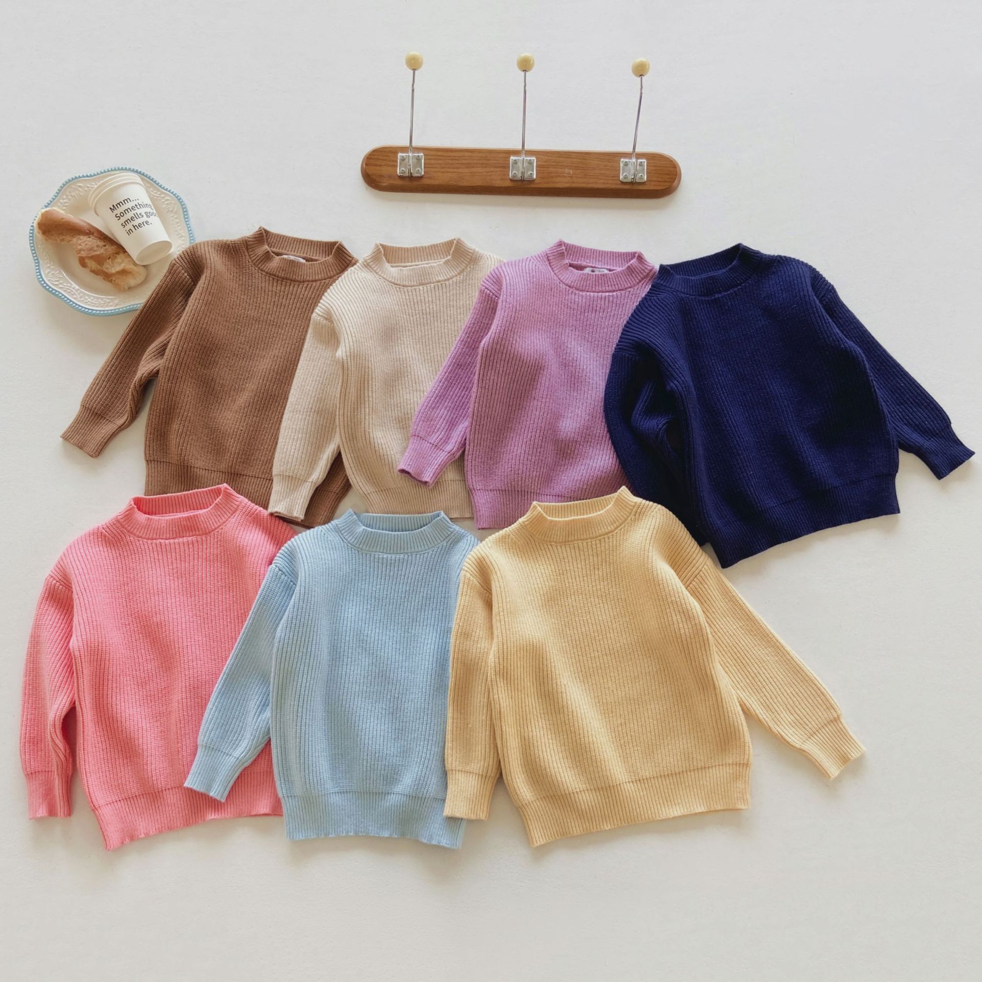Children’s Solid Color Sweater Base Shirt for Autumn and Winter Thickened Warm Girls’ Knitted Sweater Candy Color New Top