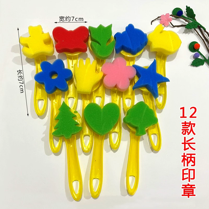 | nameOriginal | Children's sponge brush painting sponge stick diy graffiti rubbing kindergarten art brush mushroom head sponge seal |