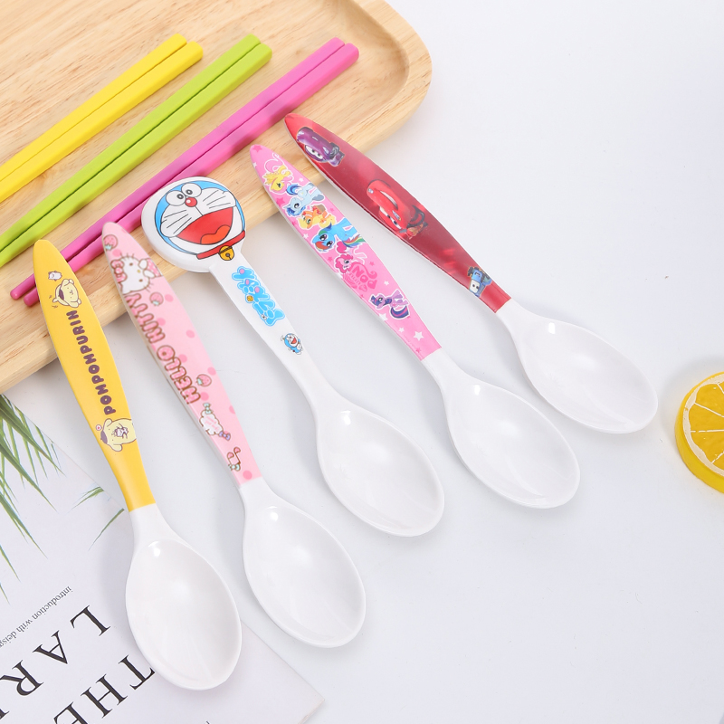 | nameOriginal | Children's spoon kindergarten baby eating spoon cute cartoon dessert spoon creative melamine anti-fall plastic long handle spoon |