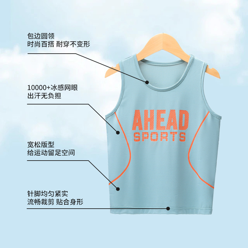 | nameOriginal | Children's Sports Vest Boy's Quick-drying Mesh Sleeveless T-shirt Big Kids Hurdle Vest Summer Ice Silk Ball Clothing |