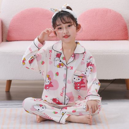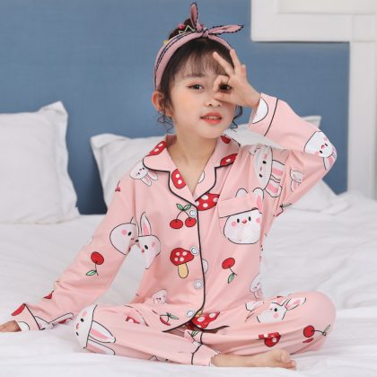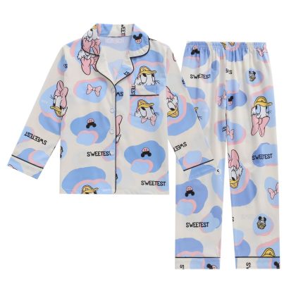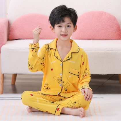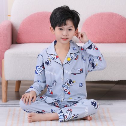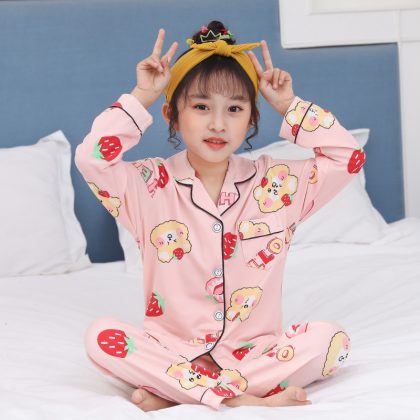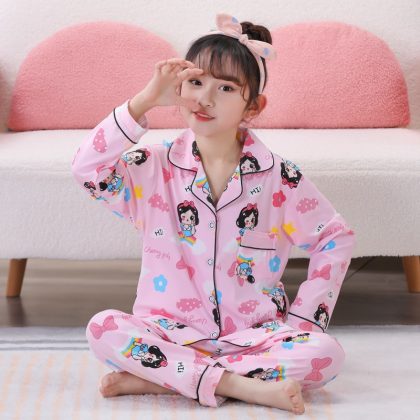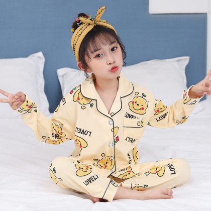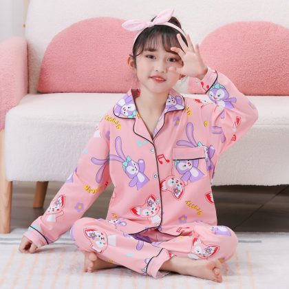 | nameOriginal | Children's Spring and Autumn new boys' lapel long-sleeved girls' pajamas suit loose girls' older children's air conditioning clothes home wear |