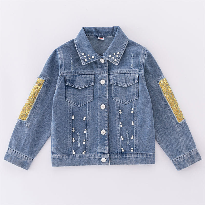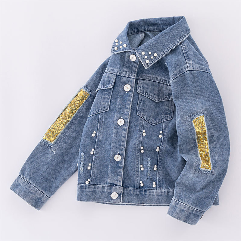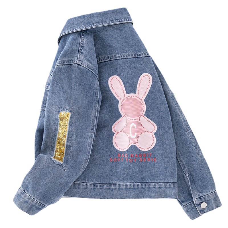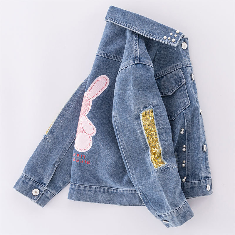 | nameOriginal | Children's Spring and Autumn New Pearl Jeans Large Children's Back Rabbit Long Sleeve Ripped Casual Jacket |