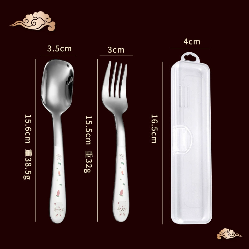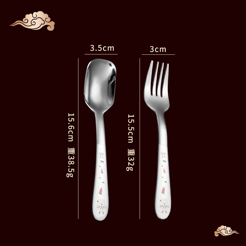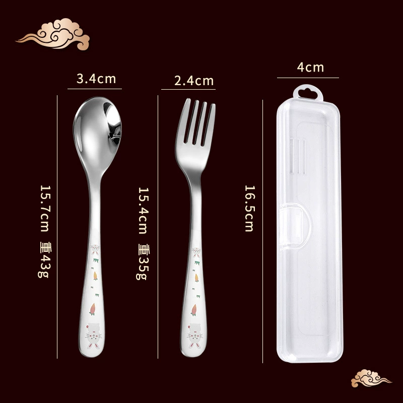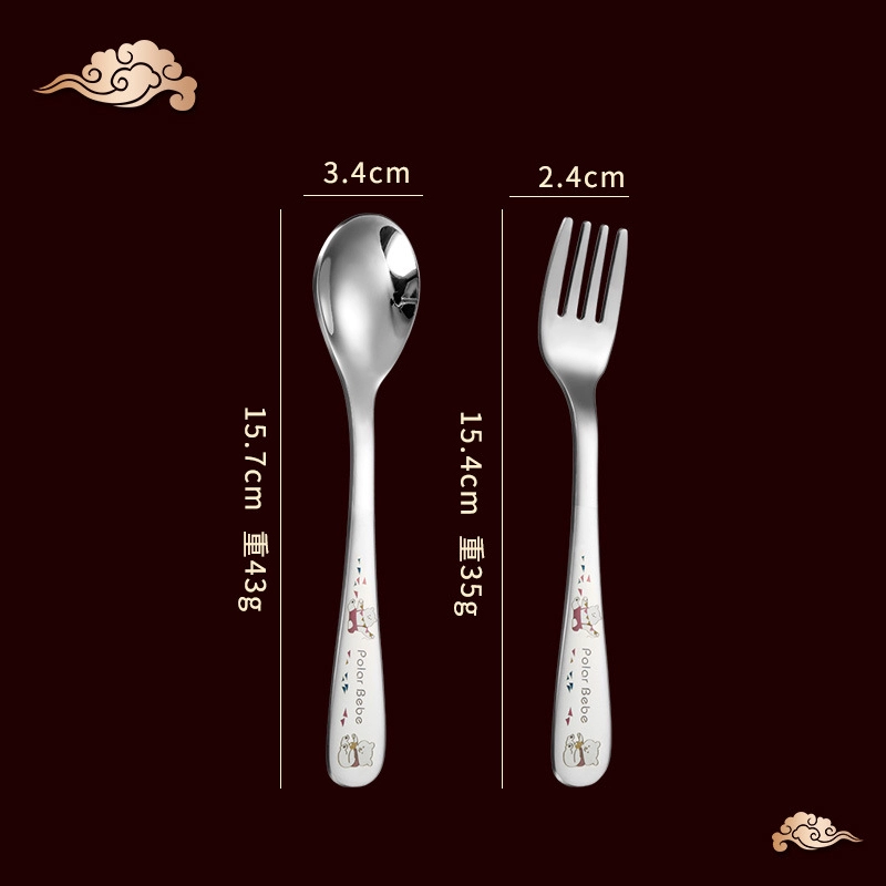 | nameOriginal | Children's stainless steel fork and spoon portable set baby's special spoon for eating long handle Yuanbao spoon 304 food supplement spoon |