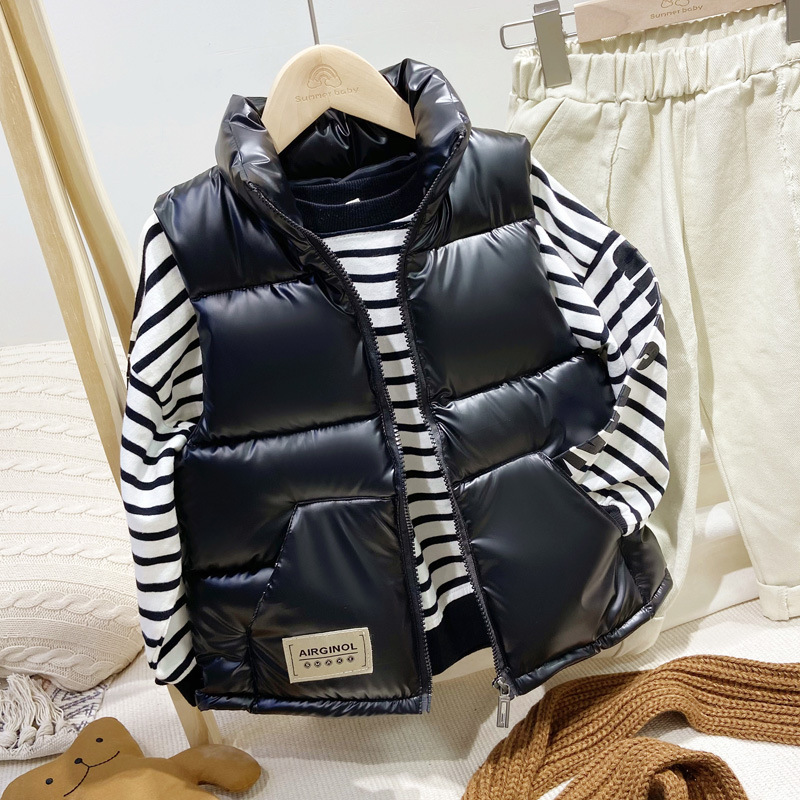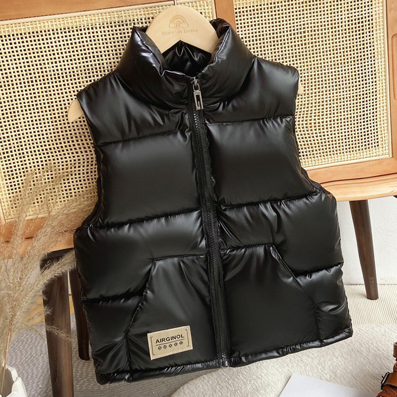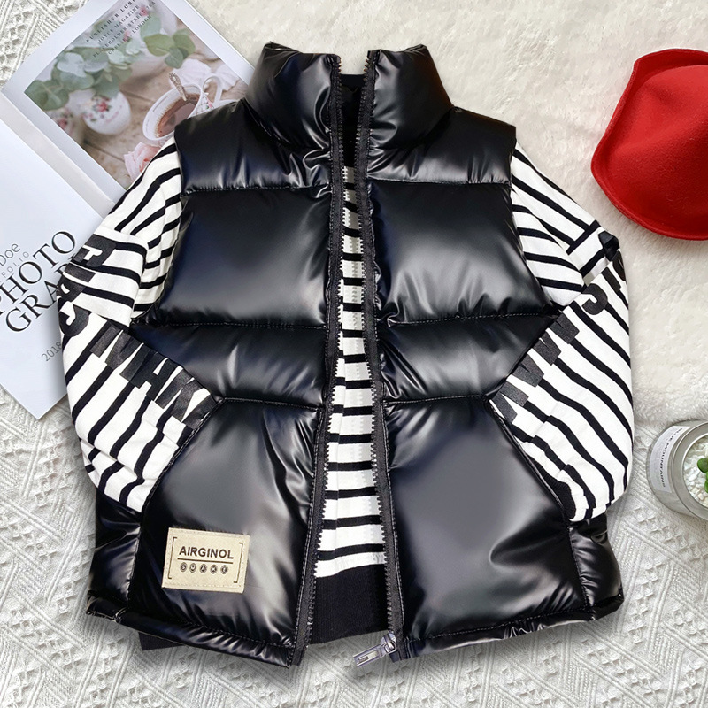| nameOriginal | Children's stand collar cotton vest 2023 new spring autumn and winter thickened waistcoat bright face outer wear down cotton vest trendy children's style |