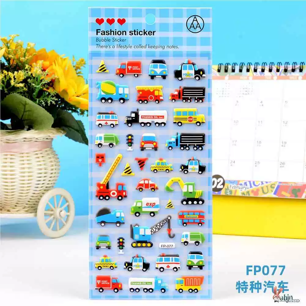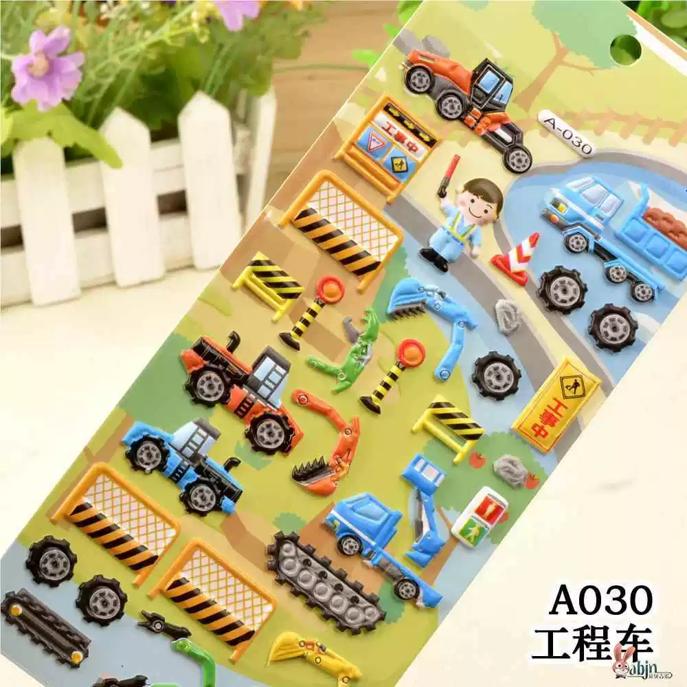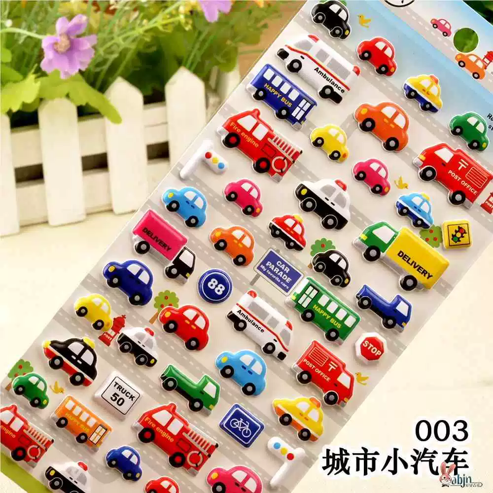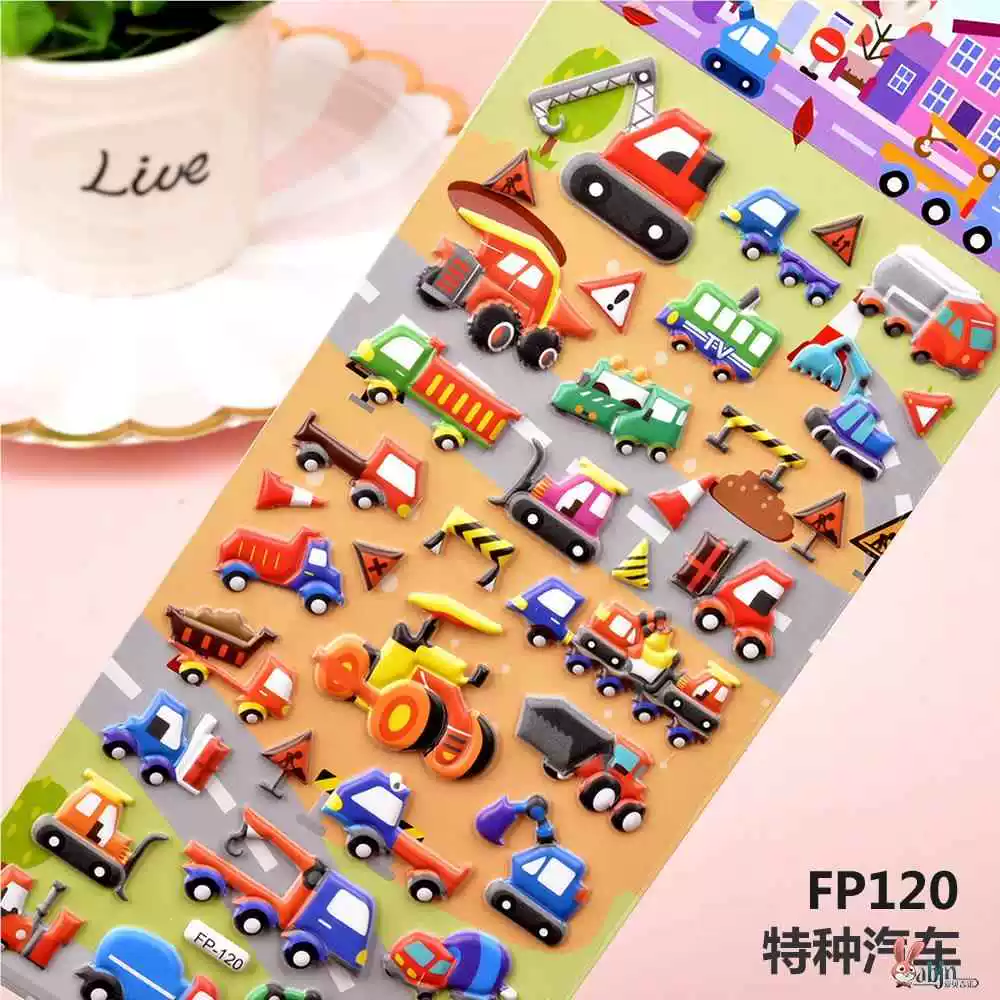 | nameOriginal | Children's stickers dinosaur animal transportation car 3D bubble sticker boy kindergarten baby sticker painting |