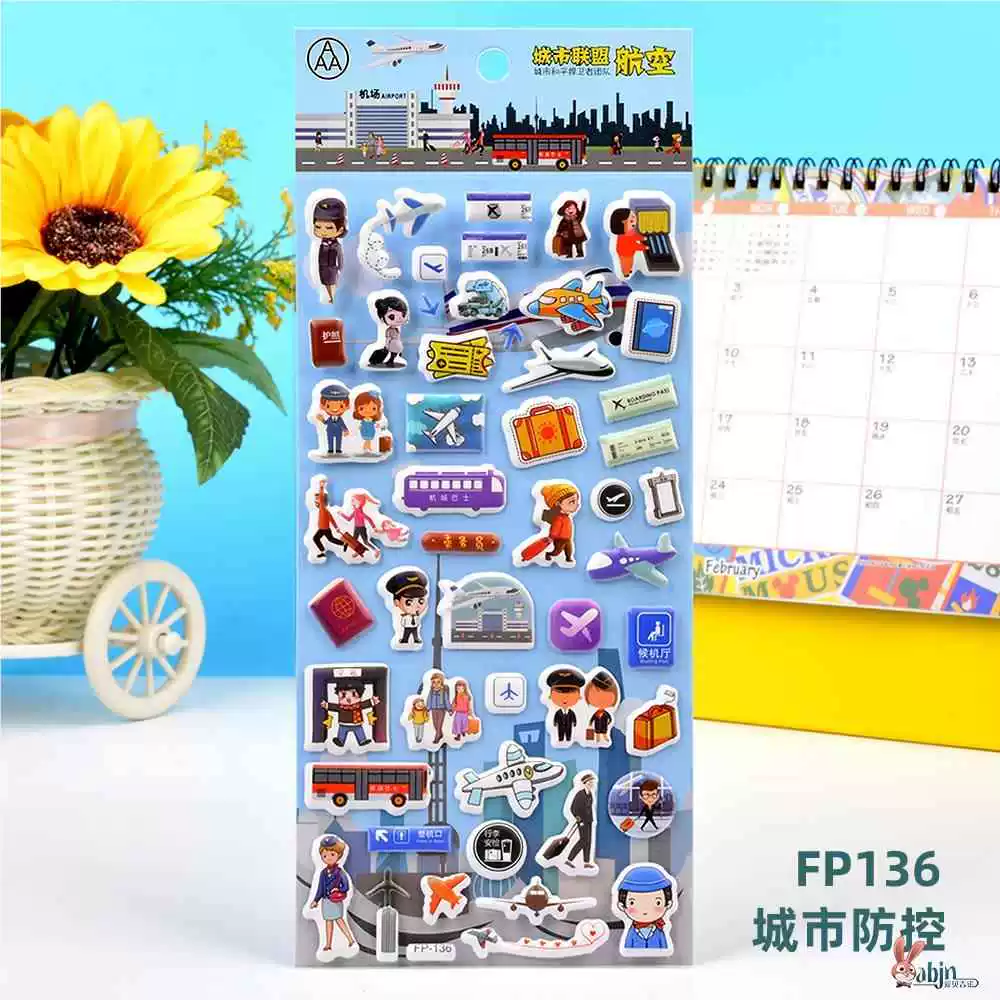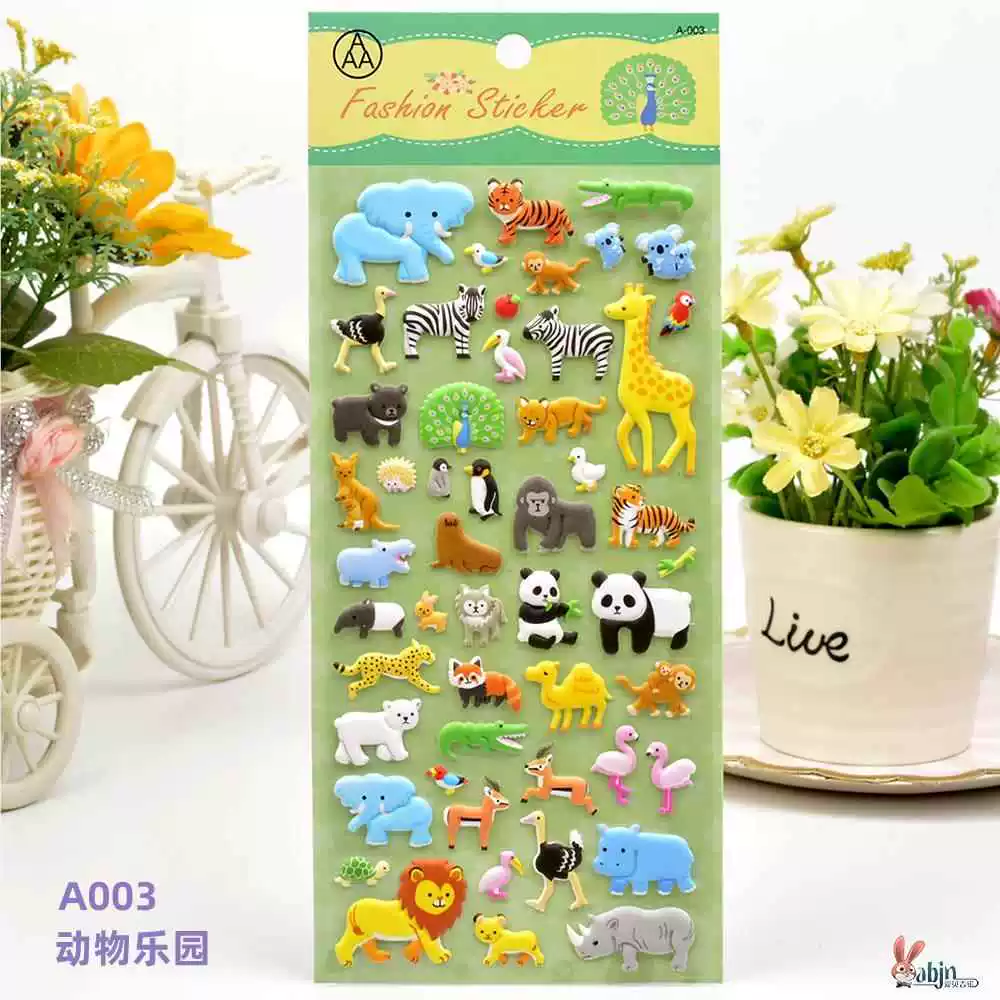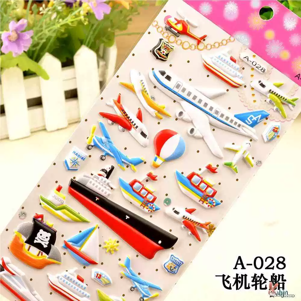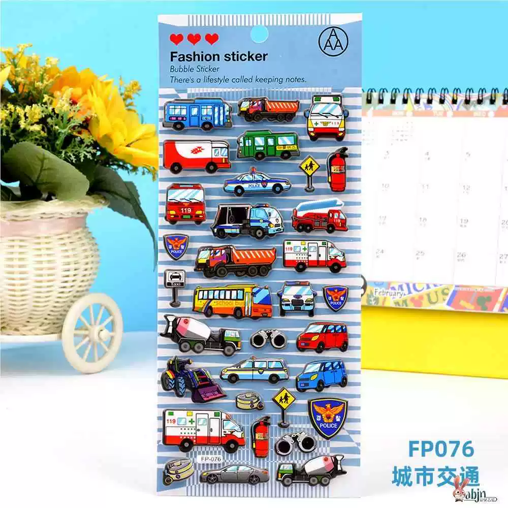 | nameOriginal | Children's stickers dinosaur animal transportation car 3D bubble sticker boy kindergarten baby sticker painting |