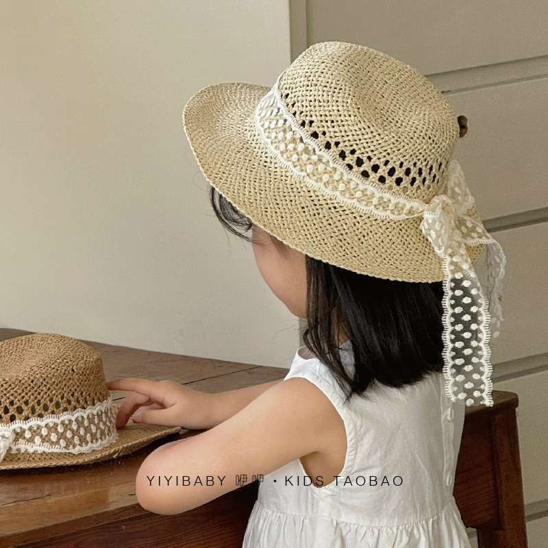 Children’s Straw Hat Girls Summer New Sunscreen Shade Beach Photo Girls Bow Pastoral Sun Hat