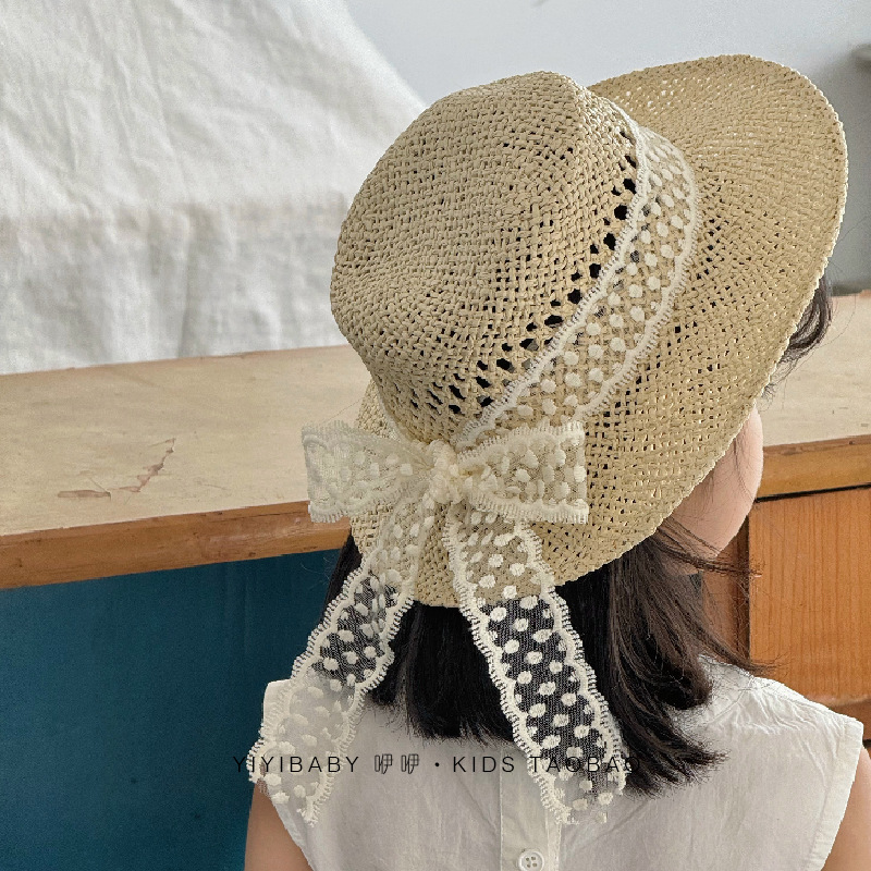 Children's Straw Hat Girls Summer New Sunscreen Shade Beach Photo Girls Bow Pastoral Sun Hat