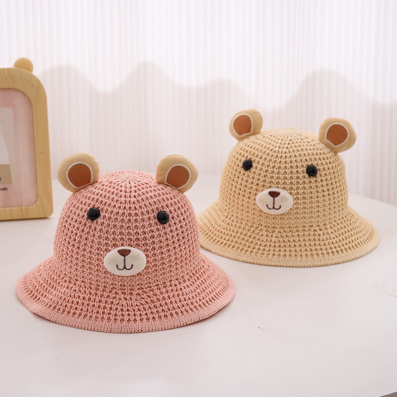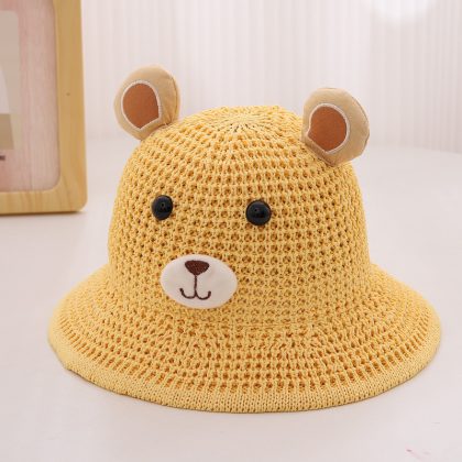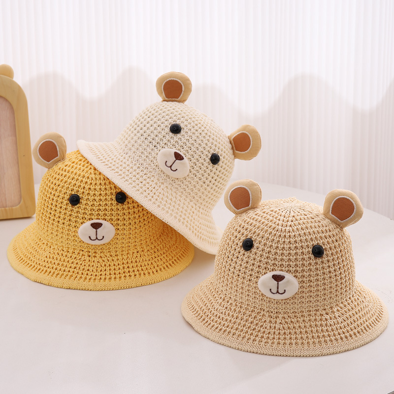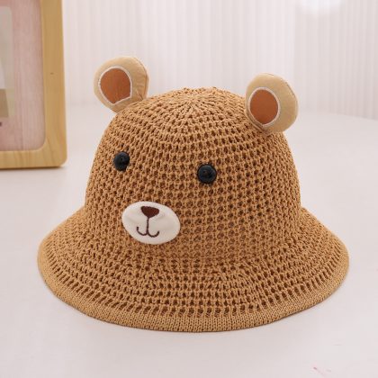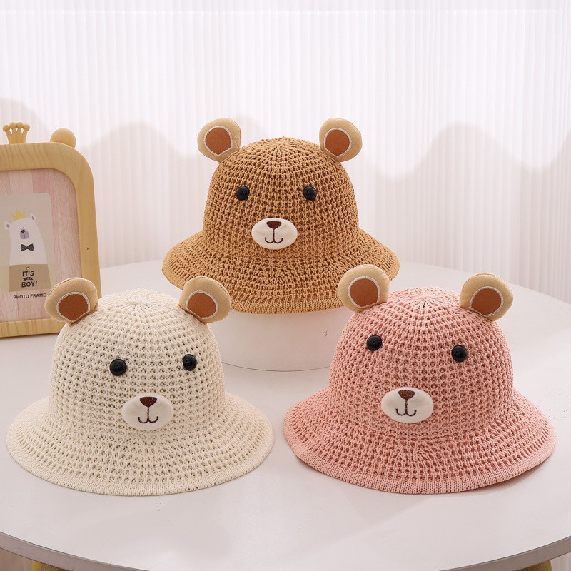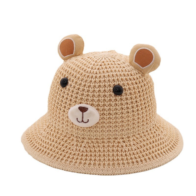 Children's Straw Hat Summer Boy's Cute Little Bear Big Brim Fisherman Hat Men's and Women's Baby Beach Sun Hat