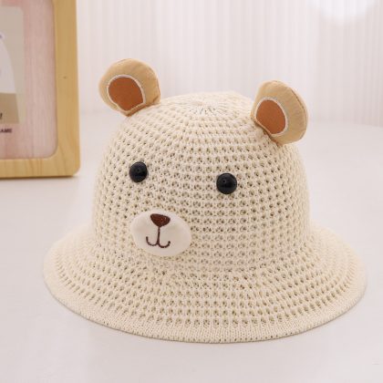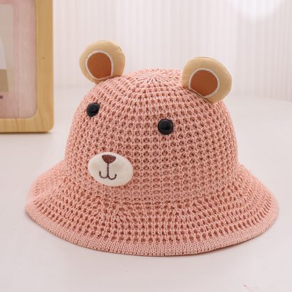 Children’s Straw Hat Summer Boy’s Cute Little Bear Big Brim Fisherman Hat Men’s and Women’s Baby Beach Sun Hat