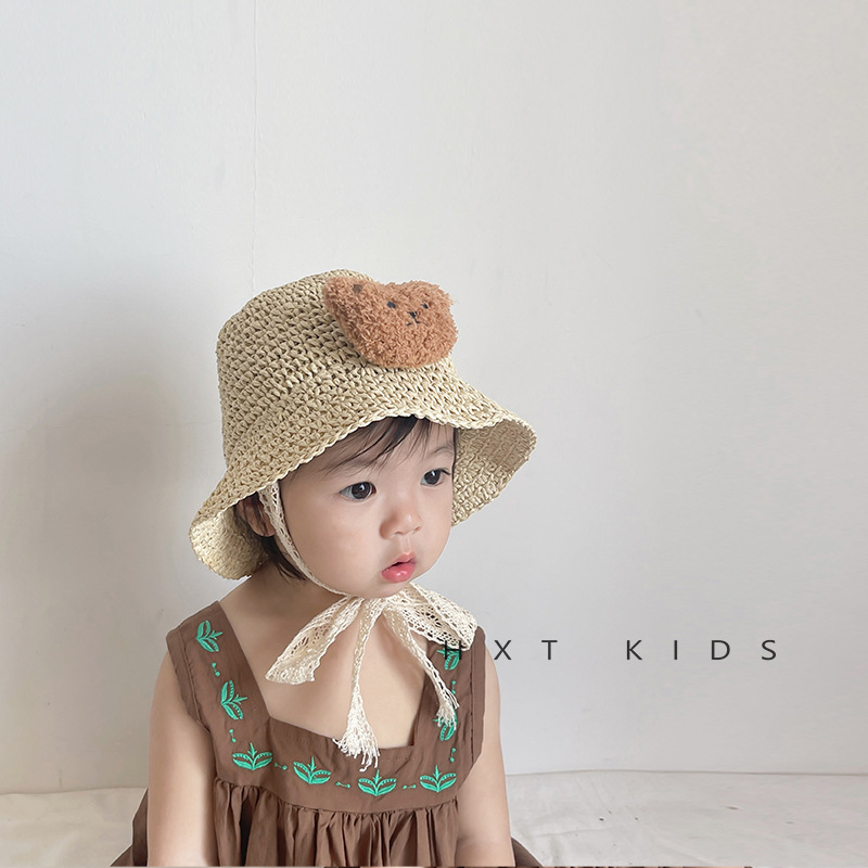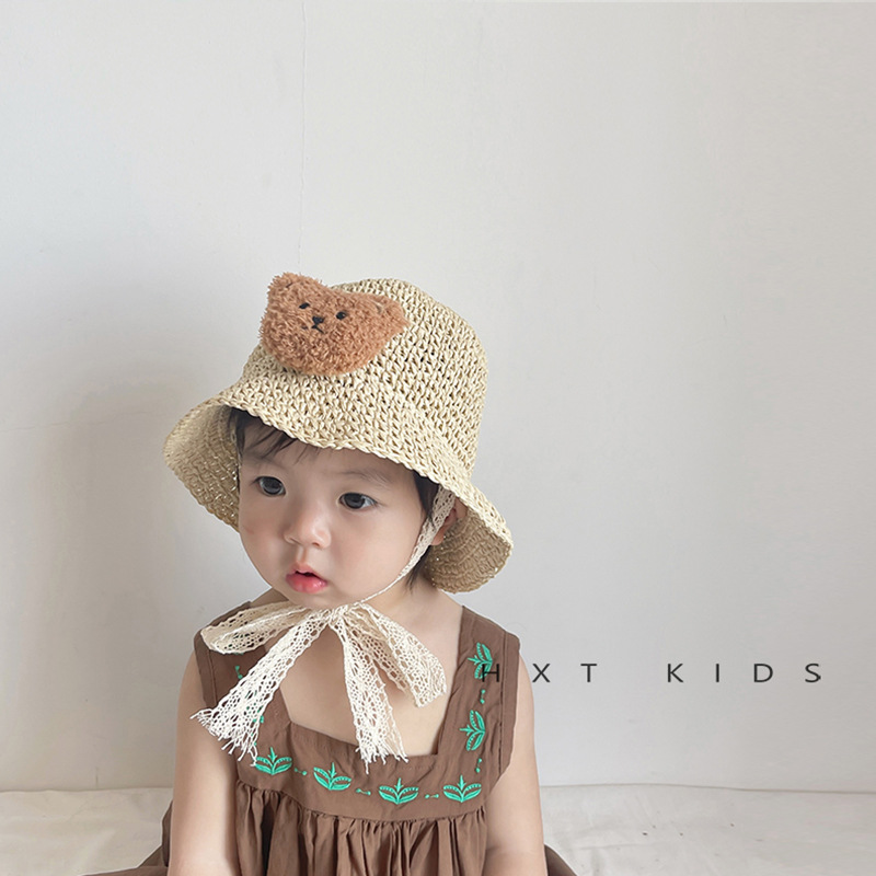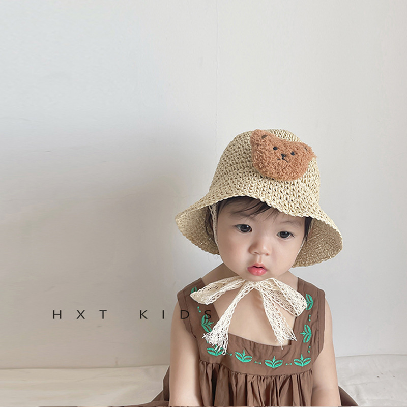 | nameOriginal | Children's Straw Hat Summer Seaside Sunshade Sun Hat Cartoon Bear Cute Super Cute Baby Sunscreen Hat Trendy |