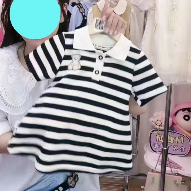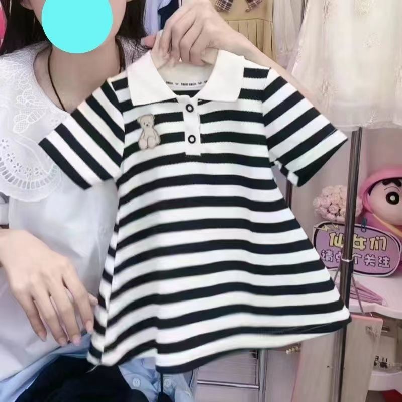 | nameOriginal | Children's Striped dress Girl's Summer Short-sleeved Thin Mid-length Dress 2024 Net Infrared Wear Polo Collar A- line Dress |