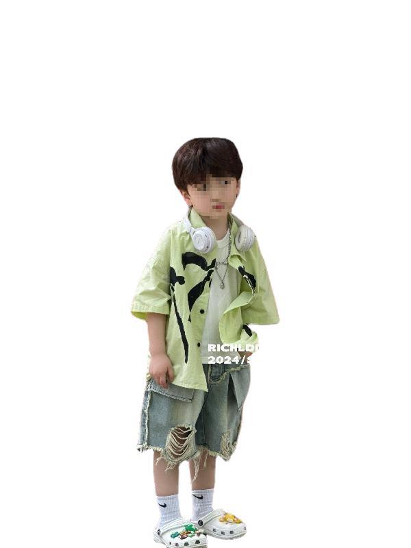 | nameOriginal | Children's suit 2024 Summer New Boys' Holiday Style Short-sleeved Shirt Tattered Denim Shorts Vest Two-piece Set |