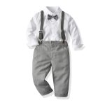 Children’s Suit Boys White Shirt Bow Tie Strap Pants Full Moon Suit 2020 Autumn Children’s Clothing Banquet Catching Week Dress