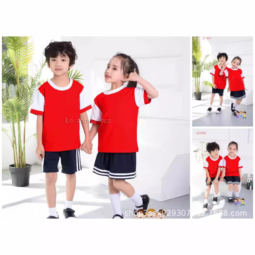 | nameOriginal | Children's suit kindergarten school uniform class uniform sports style primary and secondary school uniform red white summer short sleeve |