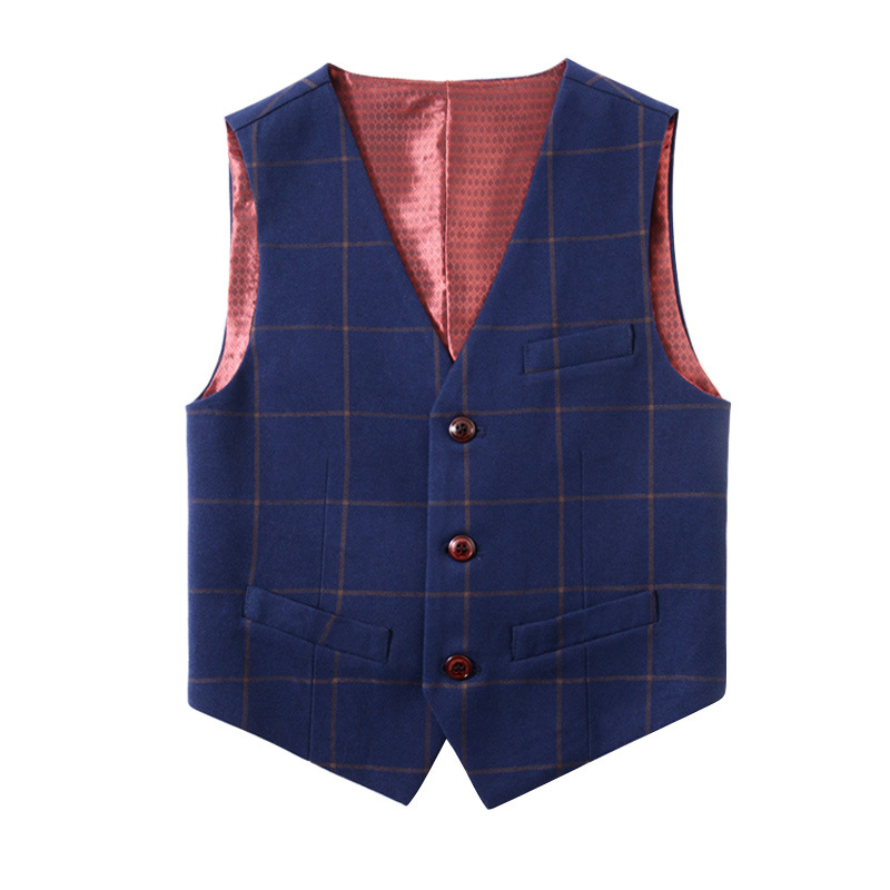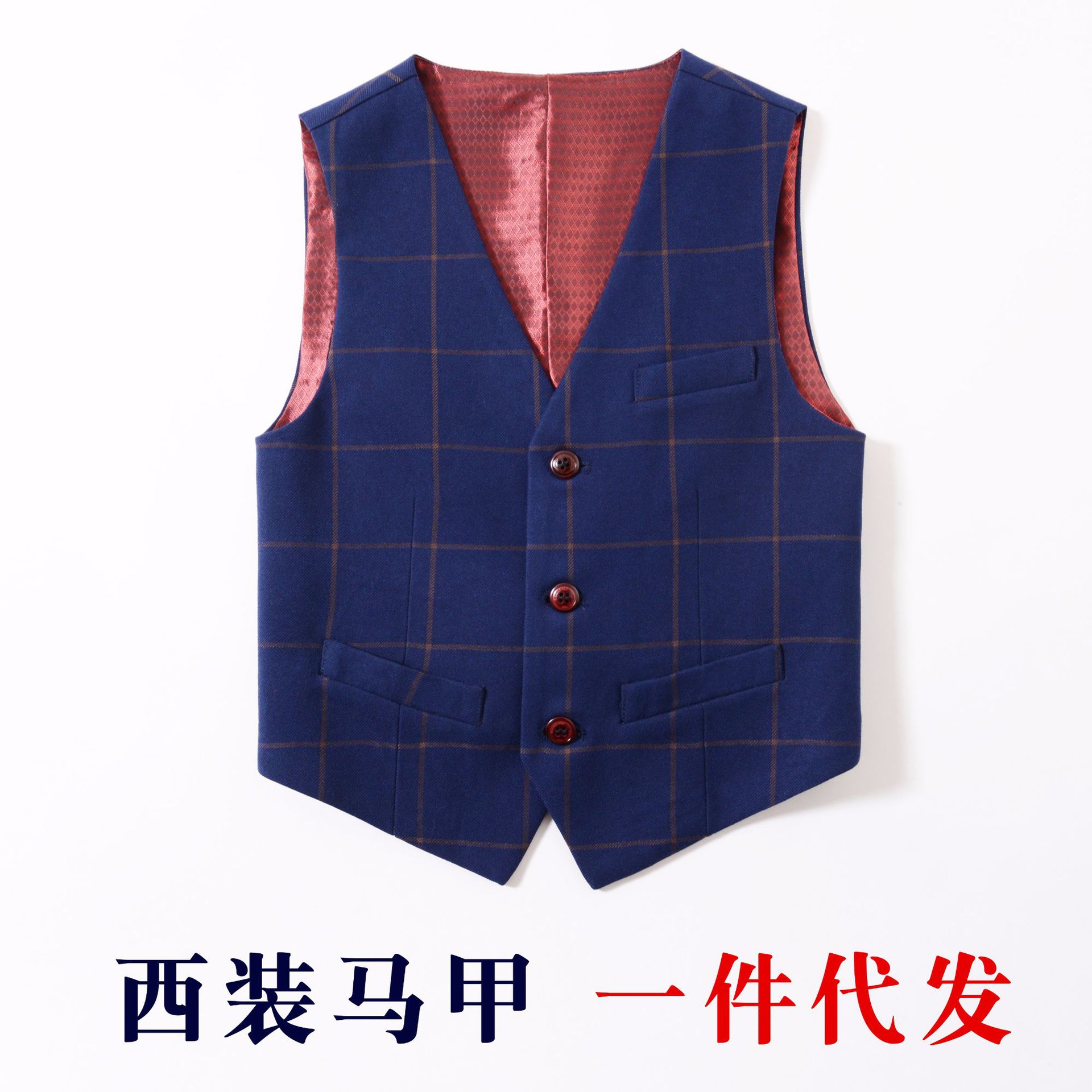 | nameOriginal | Children's suit waistcoat boys navy blue plaid vest in the big children's small flower children British style dress a generation of hair |